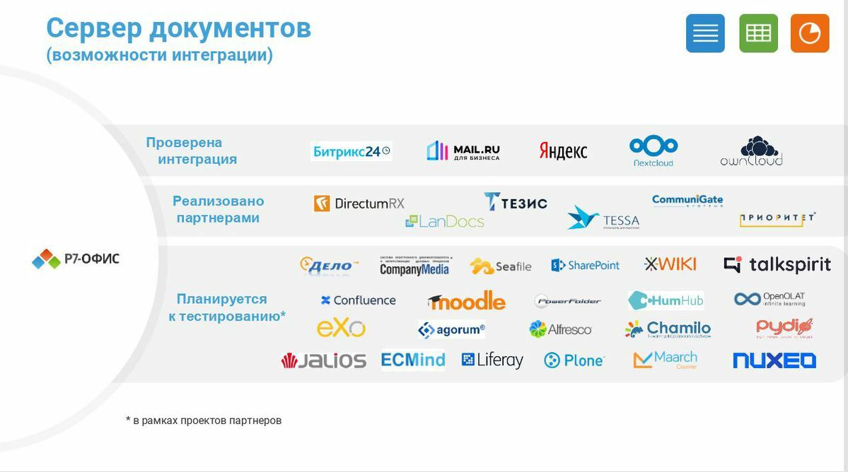 "Р7-Офис" совместим с широким списком популярных приложений и