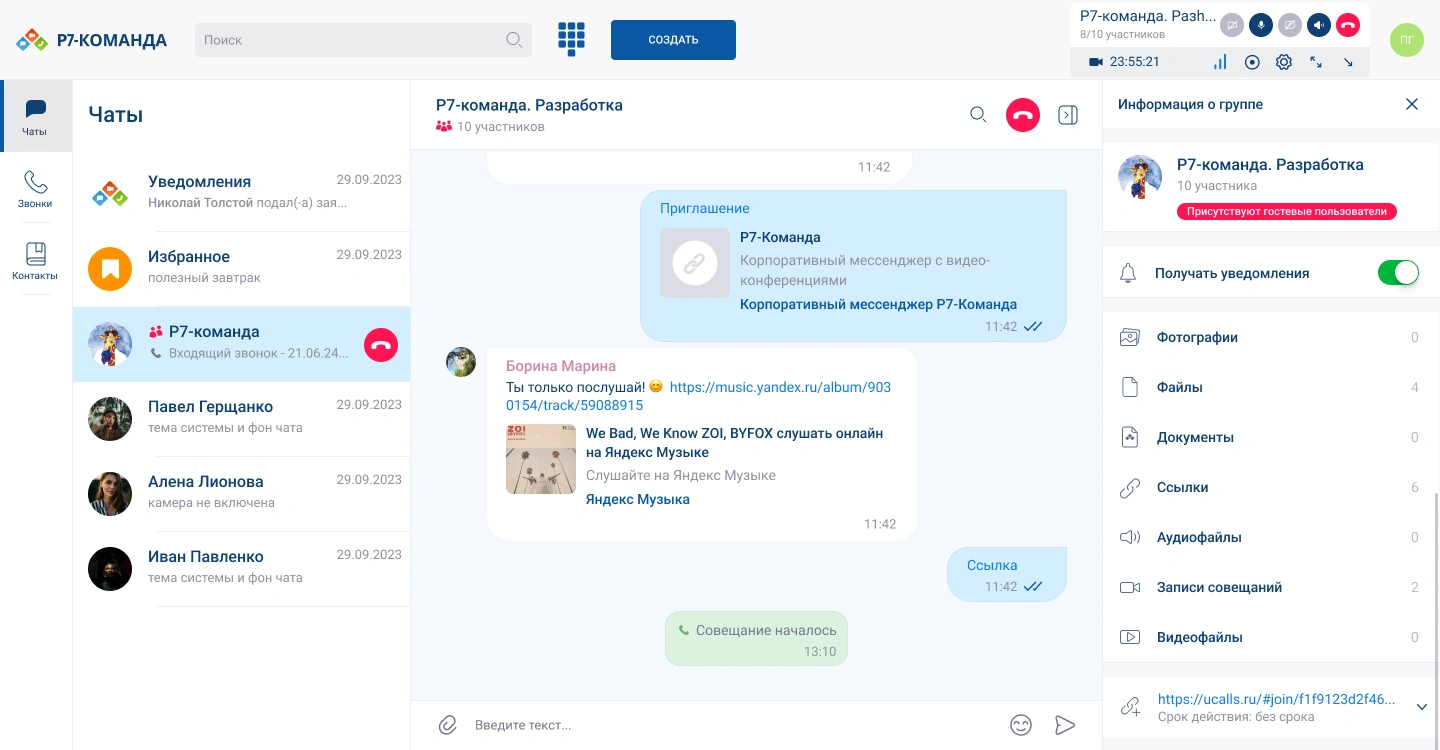 Работа с вложениями: отправка файлов любых форматов, редактирование документов прямо в чате