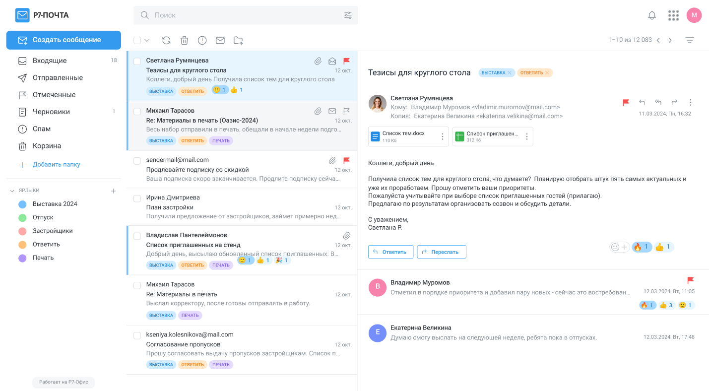 Полноценный модуль Р7-Почта можно развернуть с почтовым сервером Р7. Это означает, что вы можете отправлять и принимать электронные письма без необходимости использовать сторонние почтовые сервисы. Это обеспечивает вам полный контроль над вашей корпоративной почтой и повышает безопасность обмена сообщениями.